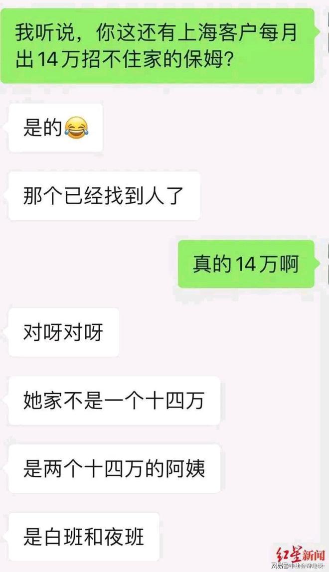 近日有一篇關于 “ 上(shàng)海太太月薪14萬招保姆 ” 的朋友圈截圖在網上(shàng)引起了(le)熱議(yì)。