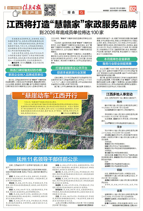 會(huì)上(shàng)還透露了(le)今年7月底,省婦聯繼續聯合省發改委、省人社廳、省商務廳在贛州市舉辦2024年江西省“振興杯”家政服務行業職業技能(néng)競賽,備戰下(xià)半年的全國巾帼家政服務職業技能(néng)大(dà)賽。